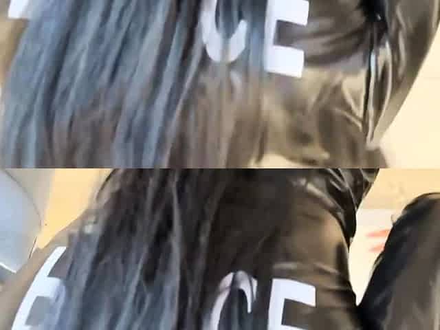 Amateur brunette in latex lingerie fucks hardcore in kitchen