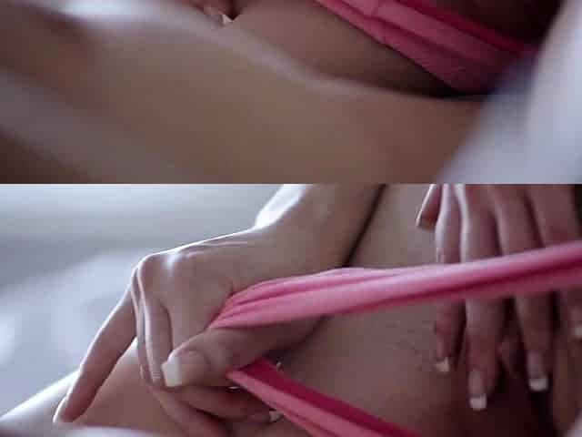 Pink labia close up of naive brunette