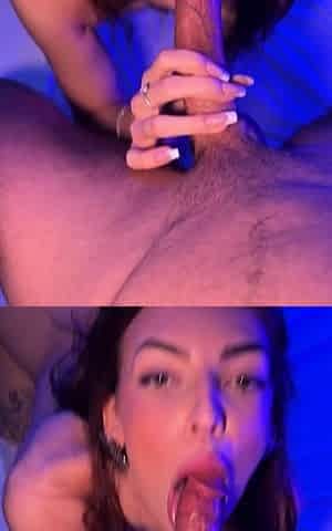 Brunette Girl in Black Lingerie Gives a Blowjob