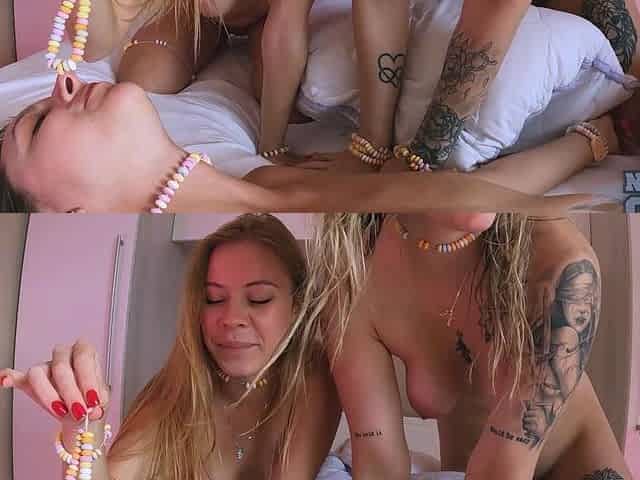 MY FRIEND SUCKS A GIANT DILDO AND I MASTURBATE MY PUSSY