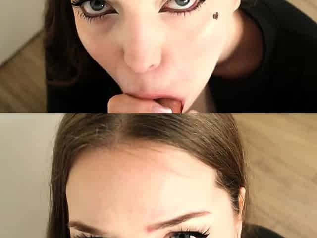 Lovely stepdaughter with bone in her gullet and drinking cum
