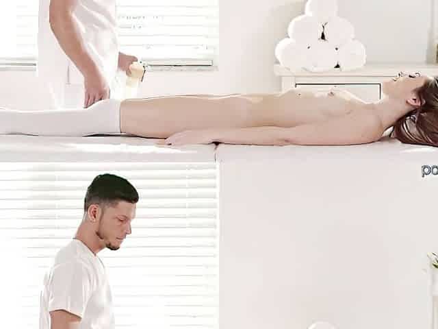 Emotional nymph at stripping movie