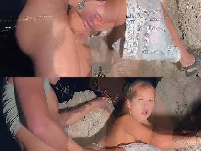 "Deserted Observation Deck At Night Is Great Place For Bang": Surprise Bang With Teen Brunette hair