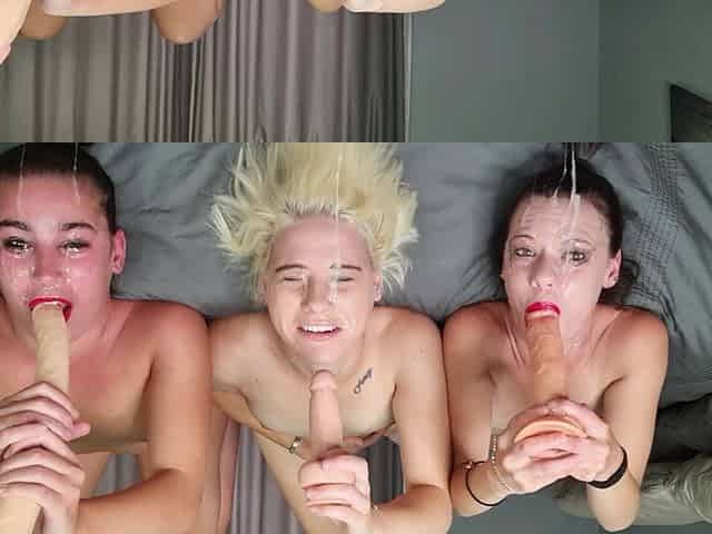 Three Topless Sluts Upside Down Sloppy Dildo Gag, Smoking