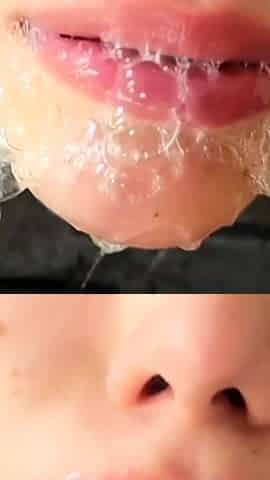 BIG FACIAL for MATURE SLUT after SUCKING COCK