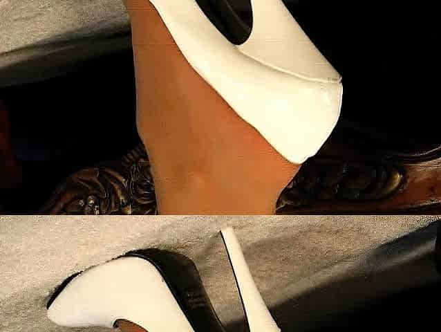 Brunette hottie in a park takes off her nylons and shows off her feet