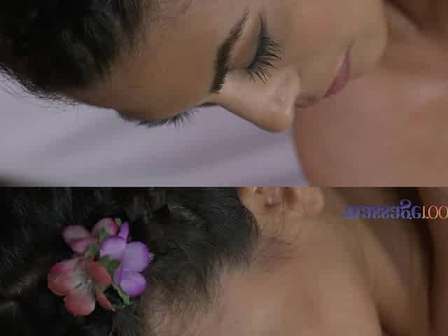 Massage of a brunette with big natural tits ends in an intense orgasm