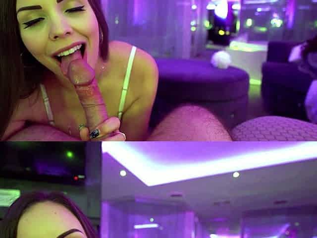 Sexy brown-haired damsel blows my massive boner in doggy