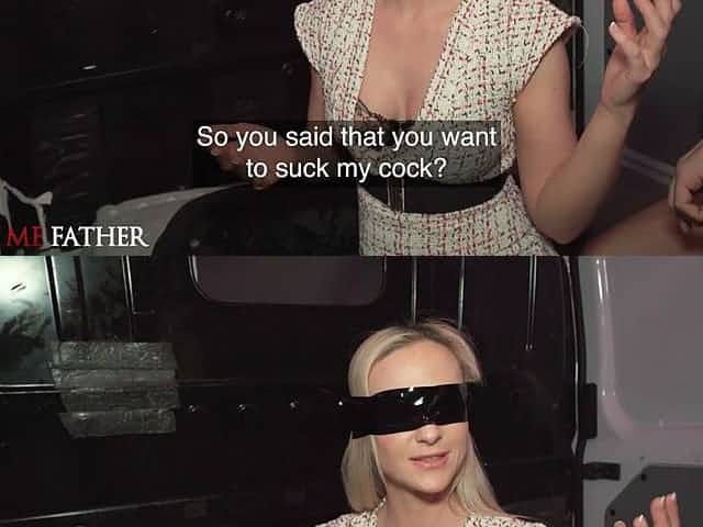 Hot blonde MILF is blindfolded and given a big cock to suck and fuck