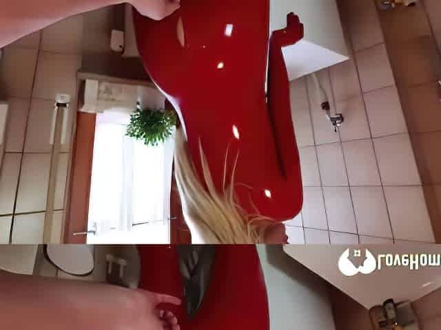 Hot brunette in kinky red lingerie gets a brutal and deep pounding