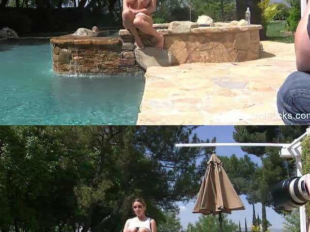 Petite blonde girl chloe foster shows off shaved pussy behind the scenes of