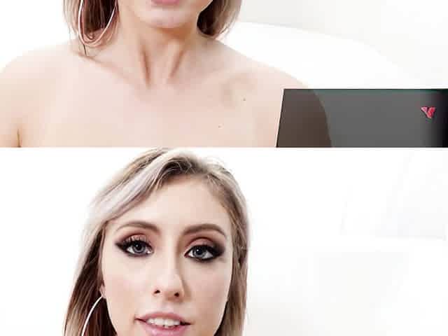Petite blonde babe Zoe Sparx pre-scene interview and BTS