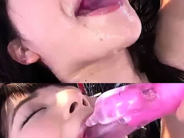 Asian bukkake fetish slut toyed and facialized