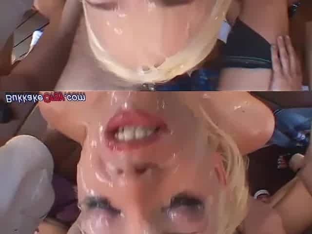 Extreme Blowbang With Blonde Housewife At A Bukkake Party