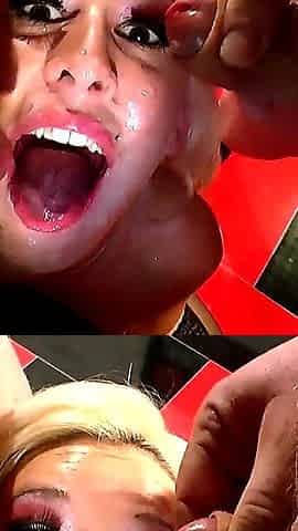Astounding deepthroat in bukkake with gulp of XXL RODS / 8