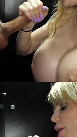 Blonde MILF with Gigantic Tits Sucks off Cocks and Fucks in Gloryhole