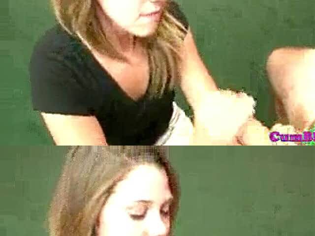 Busty babe gets bukkaked sucking cocks