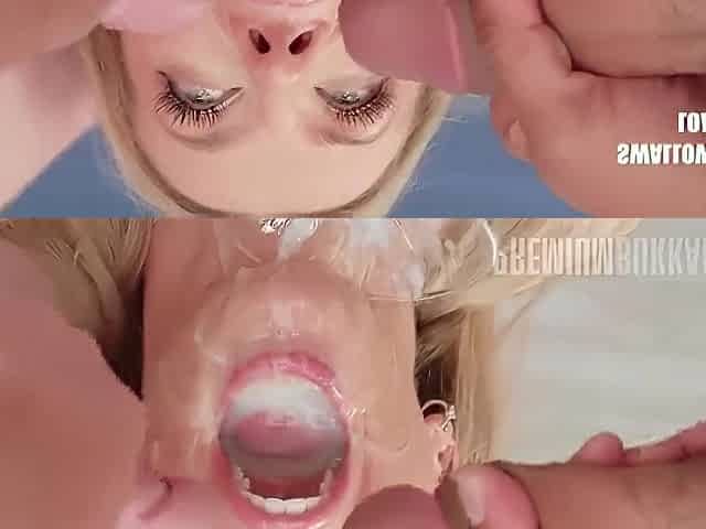 Bukkake ending for dirty blonde Alena Croft after a gangbang