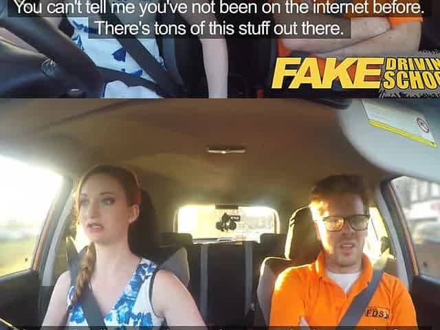 Fake Driving School Posh freaky redhead with large breasts and ginger bush bangs