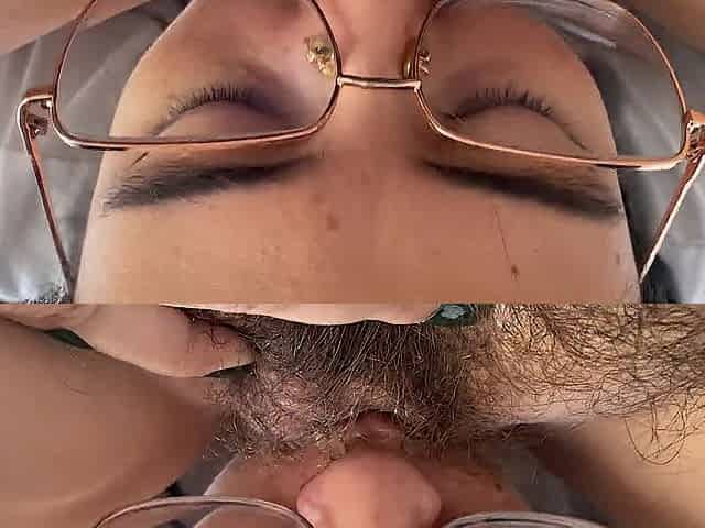 Lesbian sucking a sweet hairy bush
