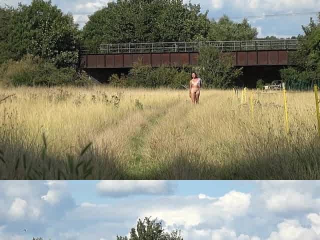 Undressed in an English meadow and flashing on the teach