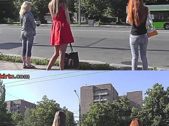 Auburn beauty with tiny booty in g-string in upskirt vid