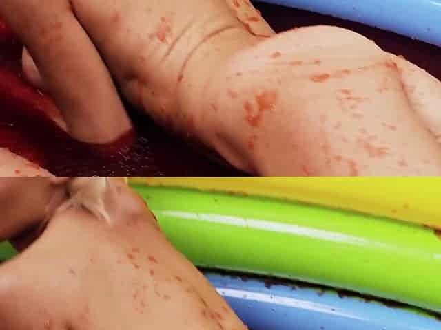 Jello wrestling and passionate fingering with two busty playful blondes