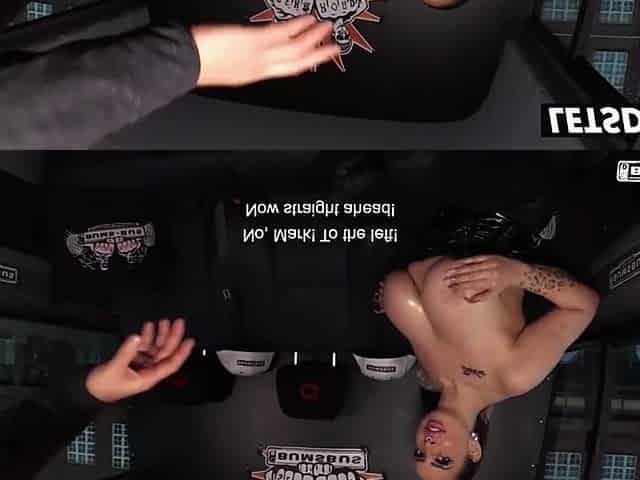 Lesbian POV closeup analtoying for busty tattooed slut