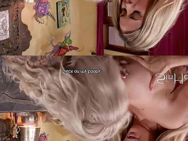 Hung Blonde beauty Angeles Cid and Busty Brunette Nina StrongHold fucking in the living room