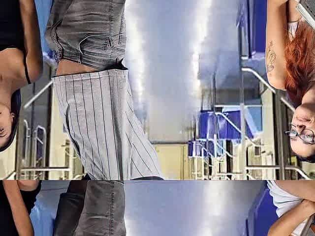 Unknown man lift woman's skirt in metro subway & rubbing his big dick on her ass