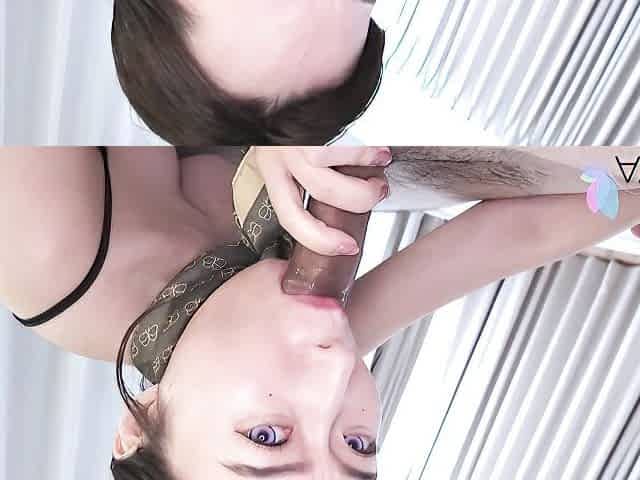 A beautiful girl with a cute blowjob face and great breasts