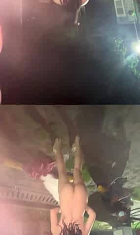 Two amateur big boobs teens threesome in public for money