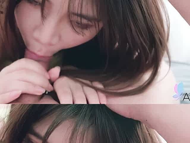 Amateur Asian teen sucks this big hard cock