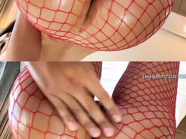 Bitchy angel in red stockings Kazumi banged by brown penis