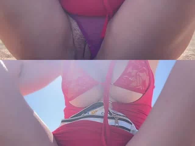 European Stepmom Public Beach Flashing Hirsute twat fetish Solo Lewd AF