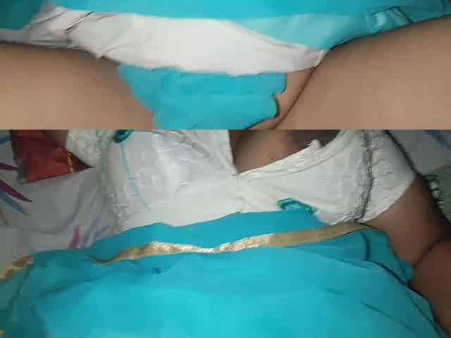 Hot sister-in-law shows her boobs and nipples through the bra and then opens the bra and wears a saree, showing her nipples.