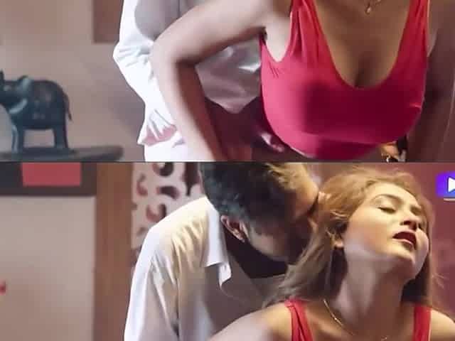 Indian Beauty's Sultry Passion Ignites on Red Couch