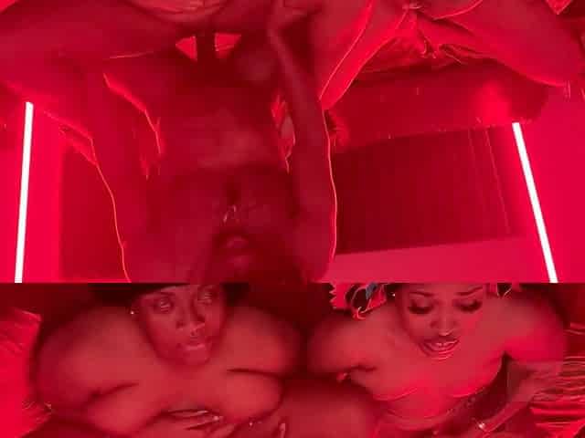 Wild threesome with BBC and booty Ebony babes in ripped fishnet pantyhose