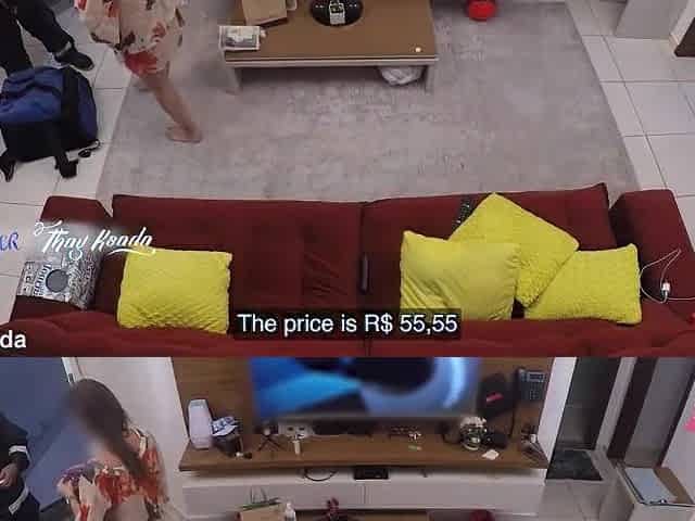 Sexy wife Thay Ksada receiving the delivery and letting him apply cream to her bazookas.