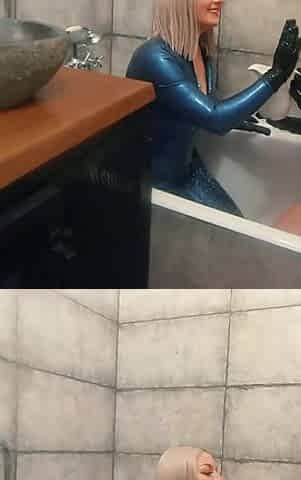 Bath Relax in Latex Rubber with Milk, Romantic Funny Fetish Video