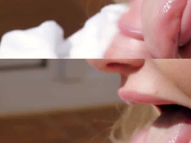 Big-Tits Brunette Teen Gives Blowjob in the Shower