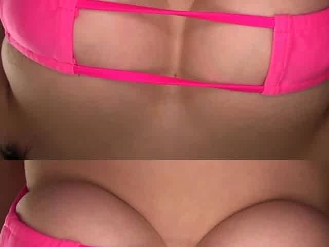 Attractive brunette teenager with big boobs fingering pussy