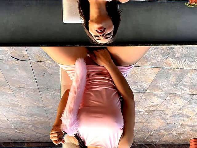 Cute face latin chick with tiny body likes to buttplug her fascinating booty