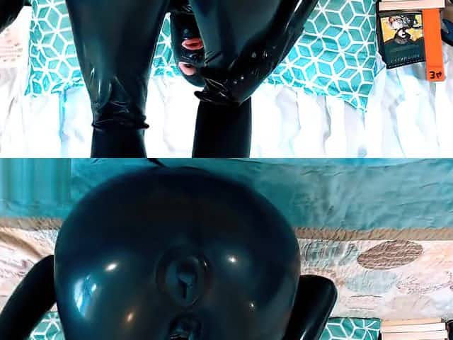 Latex Full Enclosure, Double Plugged with Inflatable Dildo and Buttplug