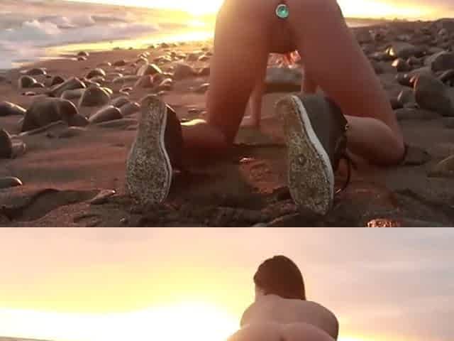 Doggy view of nice roung oiled ass buttplug vibrator pussy