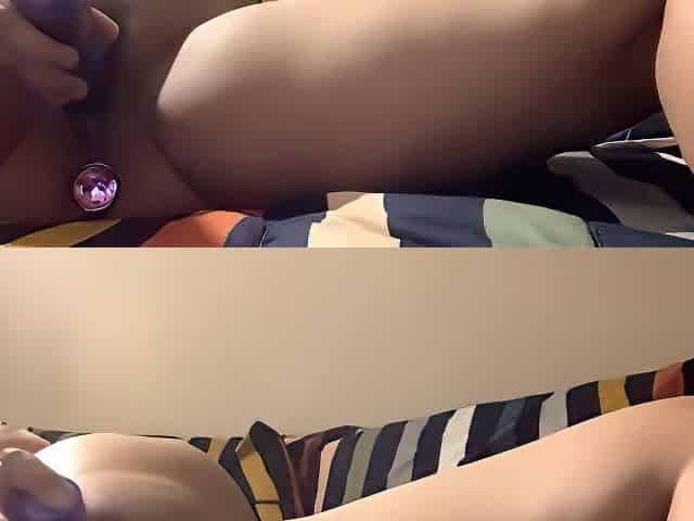 A buttplug in her constricted butt as that babe masturbates to an climax