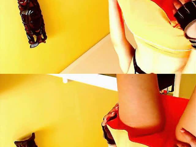 Solo girl, faux-cock, getting off