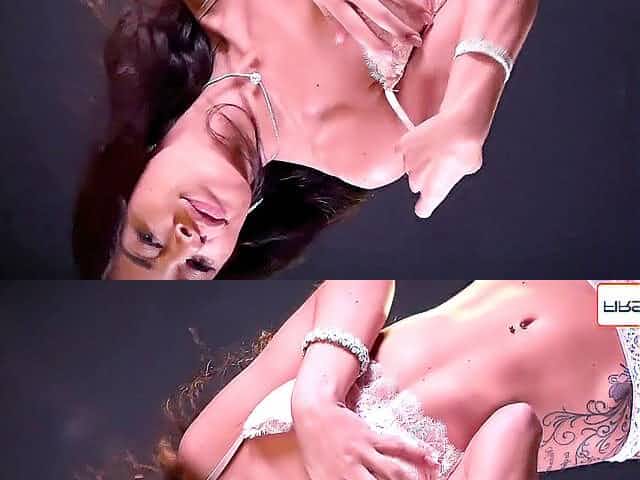 Curvy brunette in silky panties grinds her cameltoe on her lover