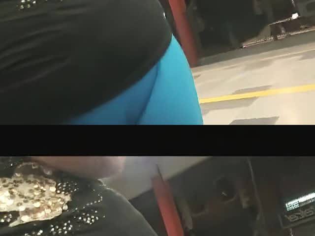 Blue leggings fat cameltoe