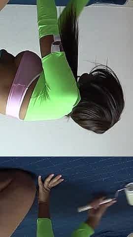 Micro Mini Skirt, Short Student Uniform, Thong G-string Panties, Busty Tanned Japanese Girl's Sexy Exercise to Tone up Body